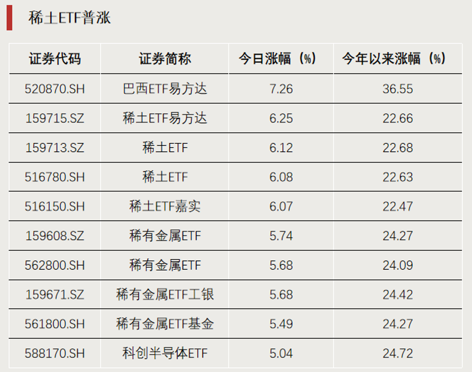 稀土和稀有金属ETF普涨
